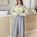 Casaco Malha riscada tom Amarelo