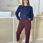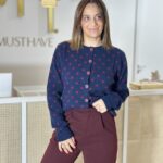 Casaco Malha Azul Bolinhas Bordeux