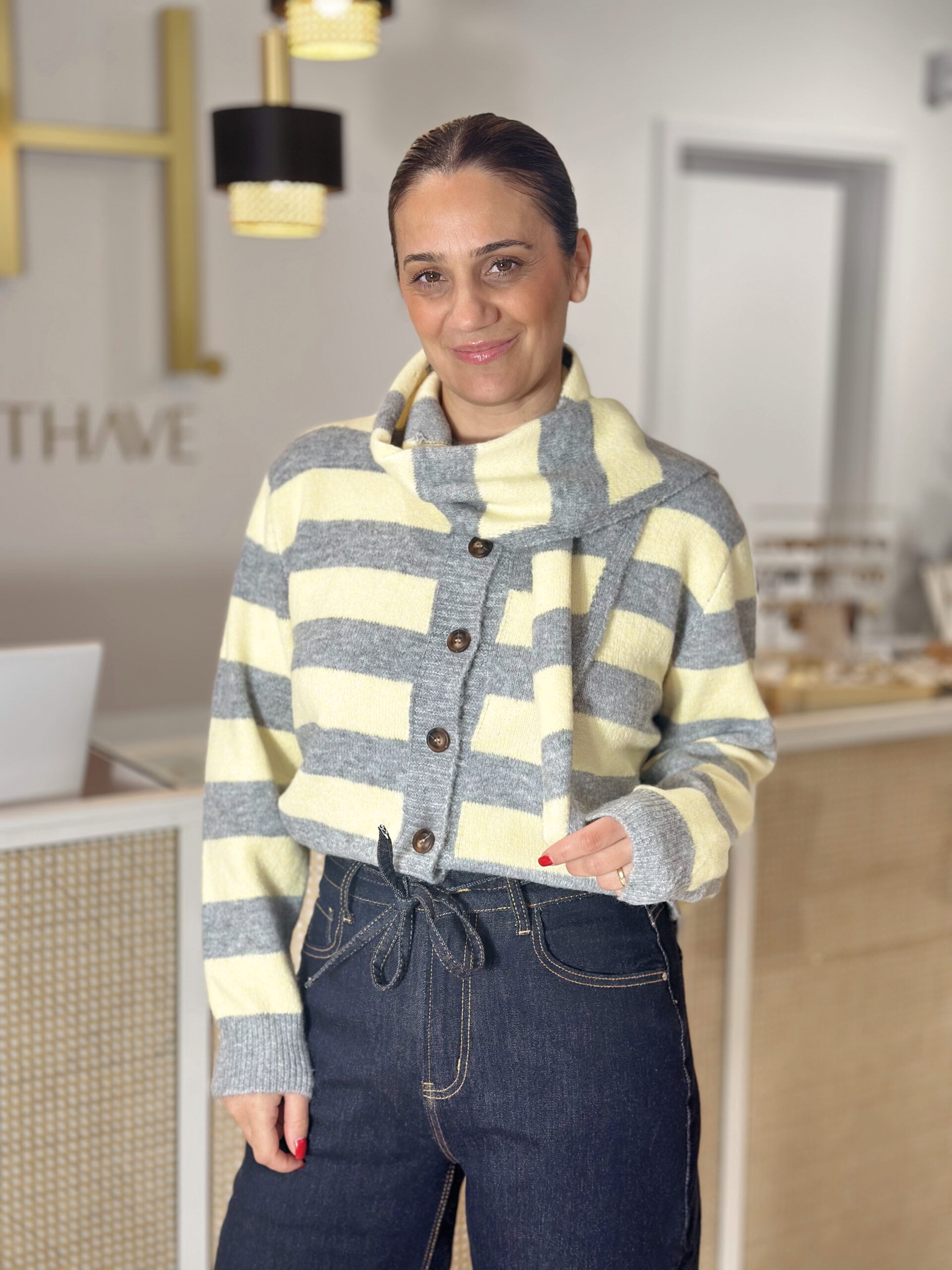 Casaco Malha riscada tom Amarelo