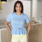 Malha canelada de manga curta.