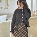 Saia xadrez em fazenda em tom de bordô e chocolate.