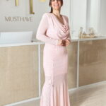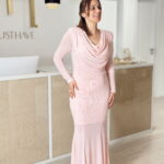 Vestido comprido, ,forrado até ao joelho, com elasticidade e brilhantes prateados.